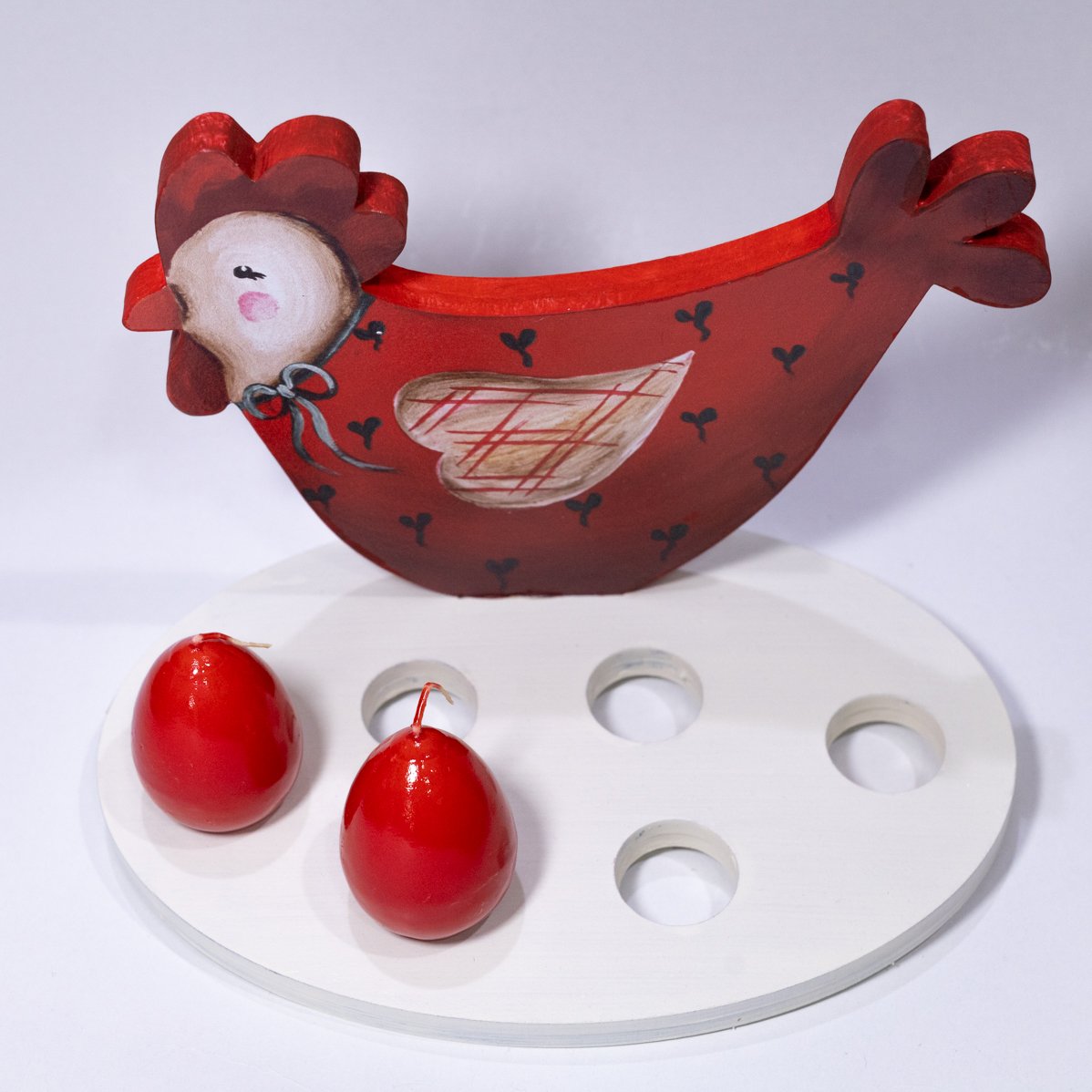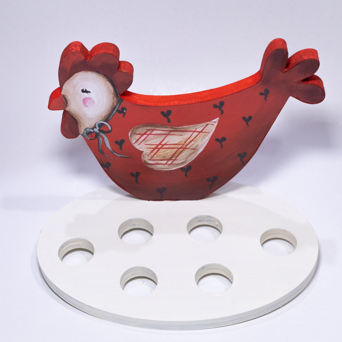 Ξύλινη Αυγοθήκη Κόκκινη Κότα