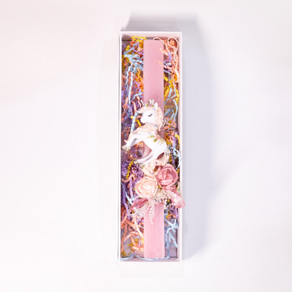 Η Λαμπάδα Ροζ Unicorn , είναι μια μοναδική, χειροποίητη δημιουργία από αρωματικό κερί, σχεδιασμένη για να χαρίσει χαμόγελα και ξεχωριστές πασχαλινές στιγμές.