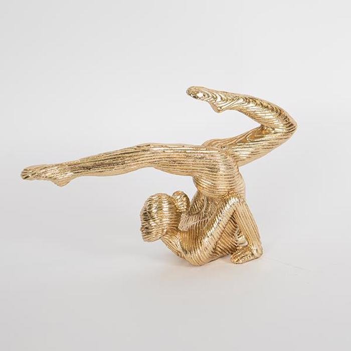 Εντυπωσιακή Χρυσή Διακοσμητική Φιγούρα Κοπέλας από πολυρεζίνη, εμπνευσμένη από την αρμονία και τη χάρη της μοντέρνας ενόργανης κίνησης. Η δυναμική στάση του σώματος αποδίδει αίσθηση ροής, ελευθερίας και κομψότητας, μετατρέποντας το διακοσμητικό σε ένα μικρό έργο τέχνης. Το λαμπερό χρυσό φινίρισμα προσθέτει πολυτέλεια και μοντέρνο χαρακτήρα, καθιστώντας τη φιγούρα ιδανική για σαλόνι, γραφείο, βιτρίνα ή επαγγελματικό χώρο. Ένα statement διακοσμητικό που αποπνέει κίνηση, θηλυκότητα και σύγχρονη αισθητική.